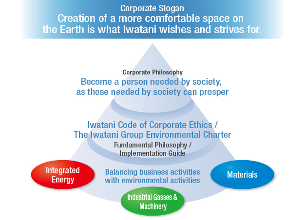 Based on our corporate philosophy—Become a person needed by society, as those needed by society can prosper—the Iwatani Group will strive to achieve sustained growth and to deliver solutions to social issues, thereby completing the four component processes of our Long-Term Vision for 2030.